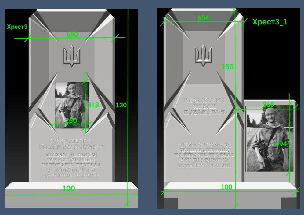 На недавней встрече с семьями погибших героев и ветеранскими организациями было выбрано три варианта надгробий, каждый из которых представлен в двух вариантах.