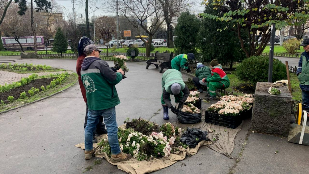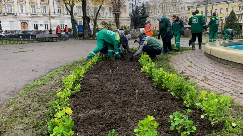 Сотрудники Коммунального предприятия «Мскзелентрест» Одессы совместно с работниками Одесской железной дороги высадили новые растения в сквере «Роза ветров» около железнодорожного вокзала. В общей сложности было высажено 164 куста роз, 250 кустов бересклета и 220 кустов хризантем.