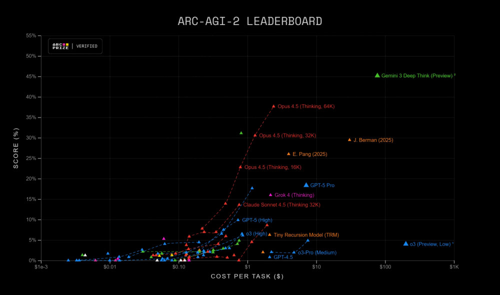 Согласно данным Google, Deep Think является самой эффективной моделью на бенчмарке ARC-AGI-2, который оценивает способность к сложному рассуждению. Режим ориентирован на решение задач по математике, естественным наукам и логике, которые часто создают трудности даже для самых современных моделей.